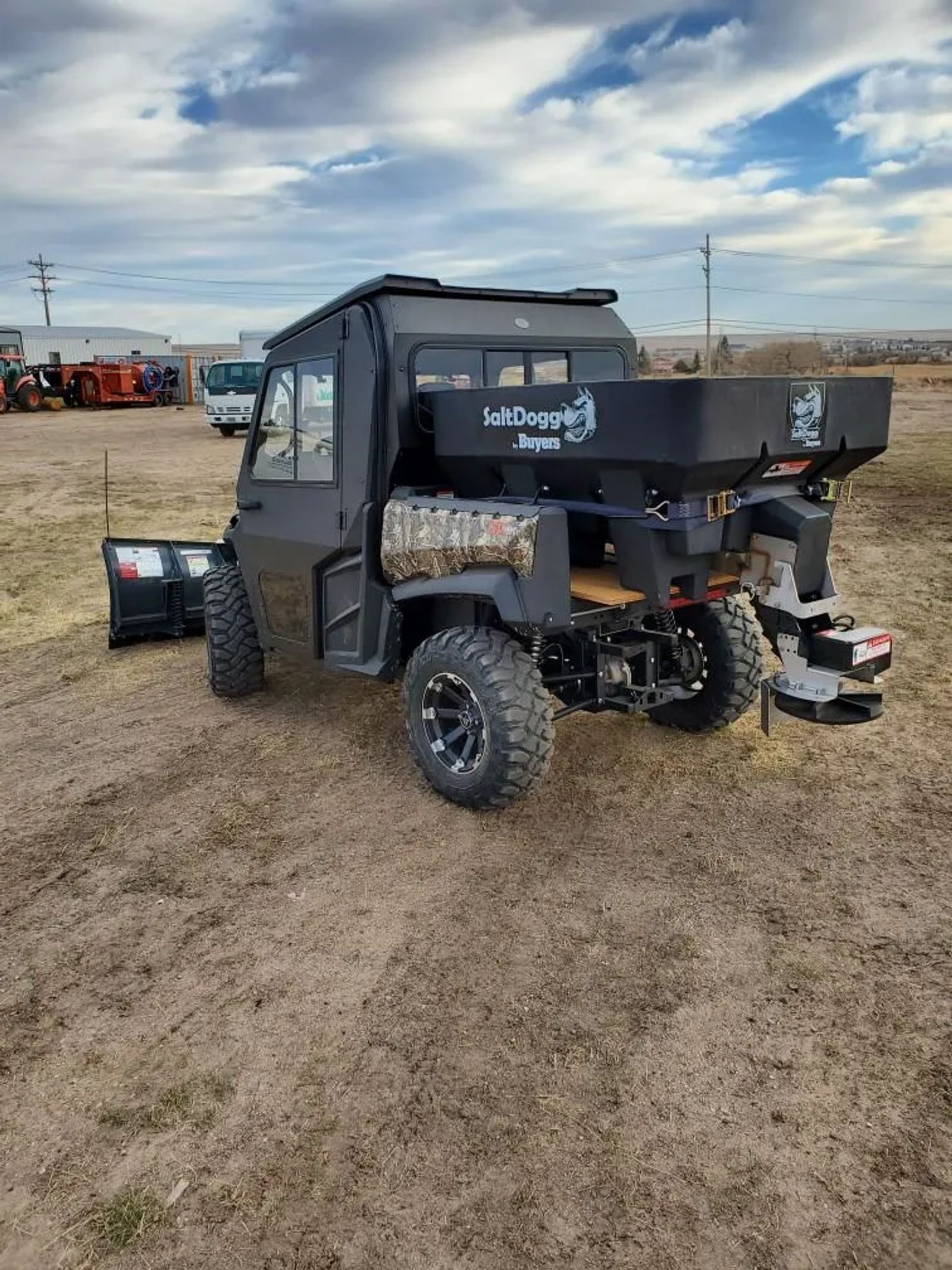 SaltDogg SHPE 0750 3/4CY Sander on Intimidator UTV with SnowEx UTV V-Plow. Summer fun a bonus!